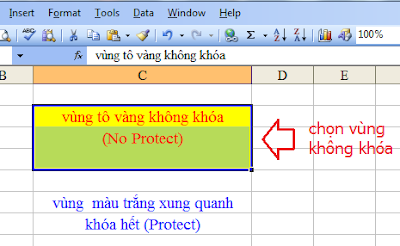 dụ ở đây chúng ta chỉ muốn khóa 1 ô màu vàng (ô C2) như hình dưới, nếu khóa 1 vùng